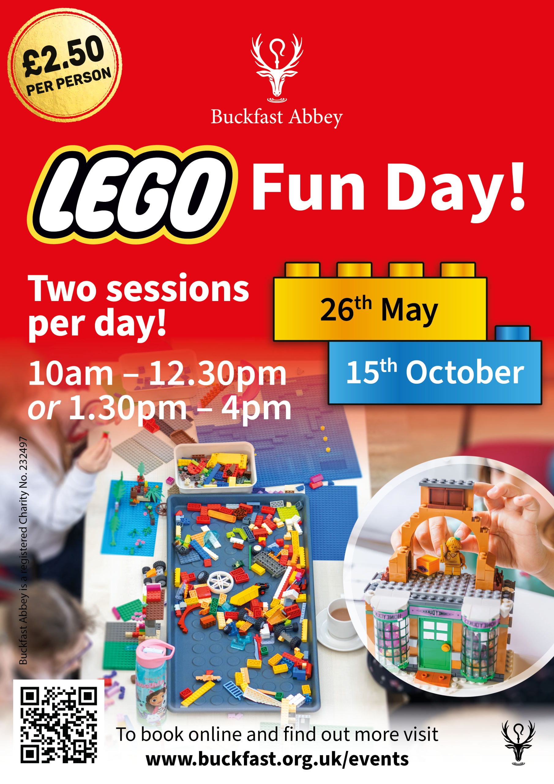 Book into one of our LEGO building sessions for just £2.50 per person (please be sure to book for all your party, adults and children). Sessions will be running from 10.00am – 12.30pm and 1.30pm – 4.00pm. Help us build the Abbey in Lego or make your own creations! Spaces are limited so make sure you book your places now!